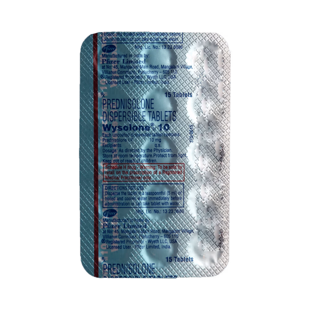 Wysolone 10 Tablet DT is used in the treatment of Severe allergic reactions,Allergic conditions,Rheumatic disorder,Skin disorders,Eye disorders,Nephrotic syndrome. View Wysolone 10 Tablet DT (strip of 15.0 tablet dt) uses, composition, side-effects, price, substitutes, drug interactions, precautions, warnings, expert advice and buy online at best price on AmeriMedscure